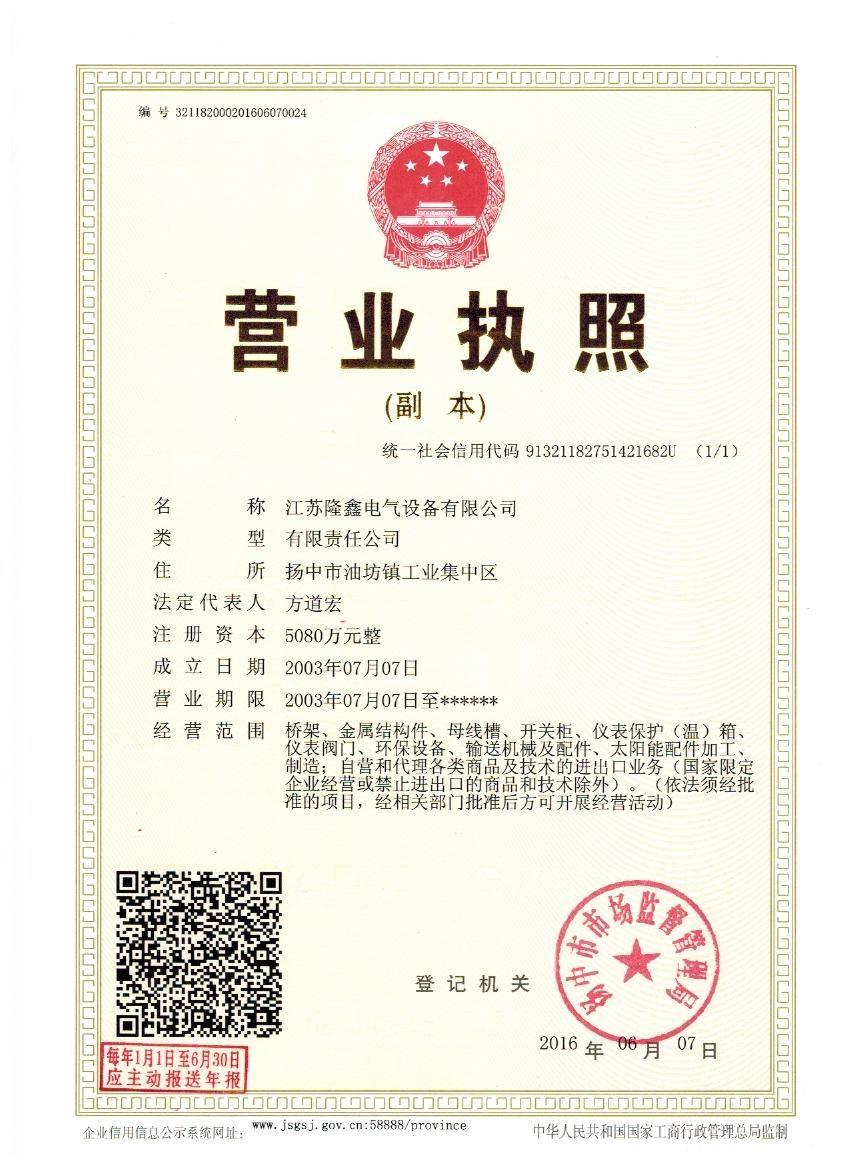 江蘇隆鑫電氣設備有限公司(原揚中市隆鑫電器設備有限公司)位于風景秀麗的江南古城 ---- 鎮江東部揚子江畔,水陸交通便利。 本公司是中石化網絡成員企業,是揚中橋架企業,工業管道閥門、儀表管配件、母線槽、匯線橋架、玻璃鋼制品的專業生產廠家。 我公司一貫以經營以管理為保證、以科技進步為動力,使產品的市場占有率不斷提高,公司正持續、穩步、健康地向前發展,秉循“創造完美、服務用戶、奉獻社會”的經營觀念,本公司生產的儀表管件及閥門系列產品、母線槽、電纜橋架幾乎覆蓋全國31個省、市、自治區的化工、冶金、交通、輕...